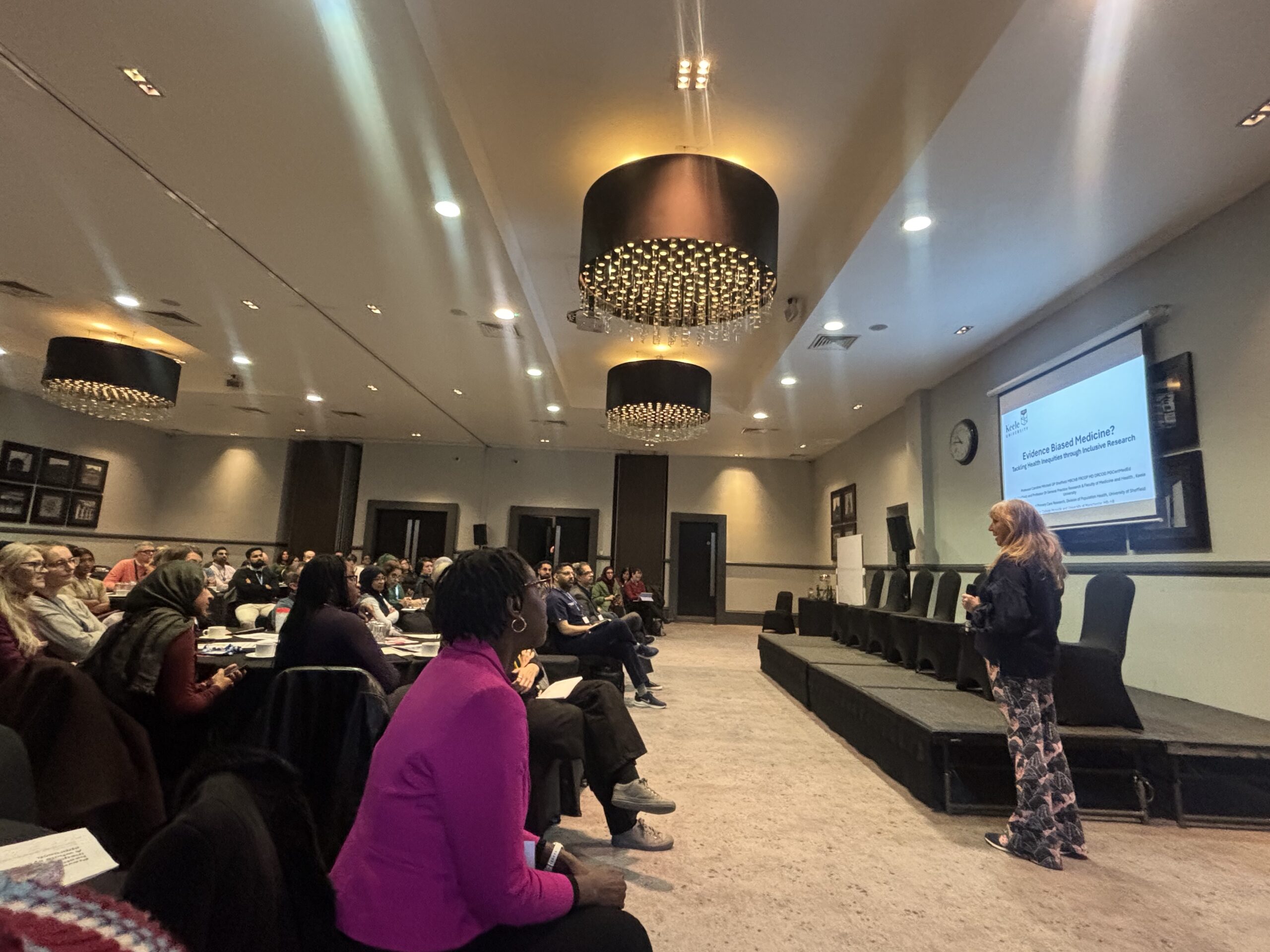 The event kicked off with our Founding Director, Dr Maria Ahmed Drake, who shared her powerful story of how personal tragedy has been the impetus for her mission to transform healthcare for underserved populations, through inclusive research and innovation. Dr Cordelle Ofori, Director of Public Health at Manchester City Council shared sobering insights into the stark health inequities that exist across GM and beyond and challenged us to adopt a whole-system approach to preventing ill-health. Prof Caroline Mitchell, co-Founder of the Sheffield DERA, expertly articulated how there is no health equity without research equity, reinforcing the need for frontline practice teams serving deprived populations to engage in research. Prof Peter Bower, Lead of the UoM Centre for Primary Care and Health Services Research spoke about the fantastic research infrastructure across GM and opportunities for frontline teams to pursue research. And the NW RRDN team, led by Susan Neeson, provided a wealth of information to support practices to become (more) research-active. Our Fireside Panel was chaired by the formidable Prof Margaret Ikpoh, NIHR National Settings Lead for Primary Care and Vice-Chair RCGP and we were joined by Dr Jim Ritchie, Deputy CMO, GM ICB who touched on the role of research in strategic commissioning.